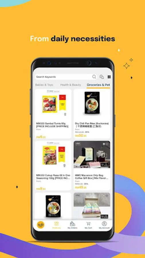 At SUBPLACE, your daily necessities and little luxuries whether it's groceries, electronic gadgets, beauty services or furniture are made available to you on a subscription basis. Browse and subscribe for as many plans as you like through our mobile app.