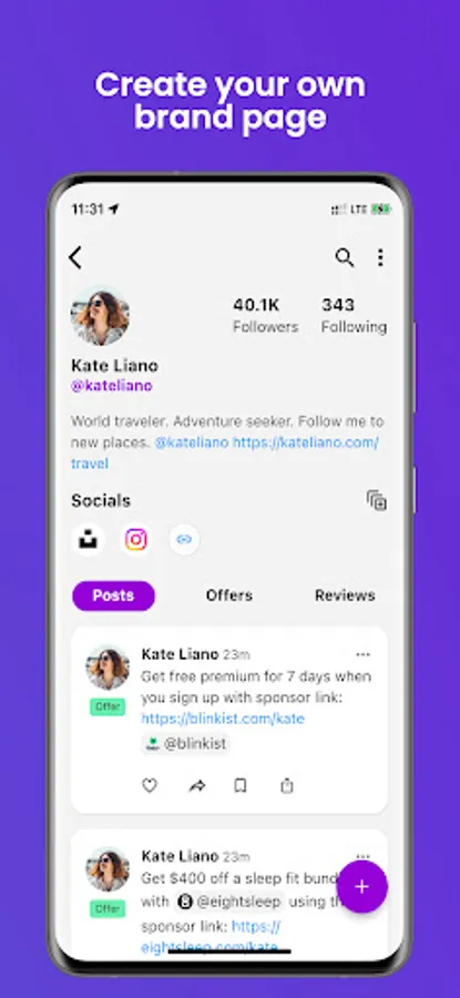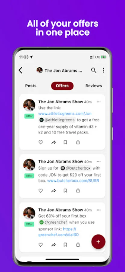 Post and discover offers from friends, creators, and your favorite brands.