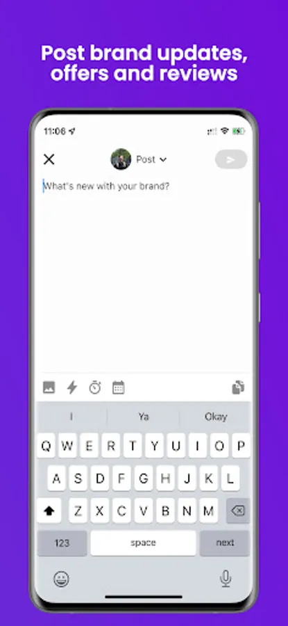 * Share brand updates with scheduled, expiring, and AI-powered posts.