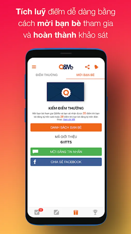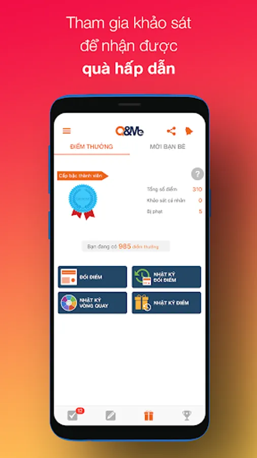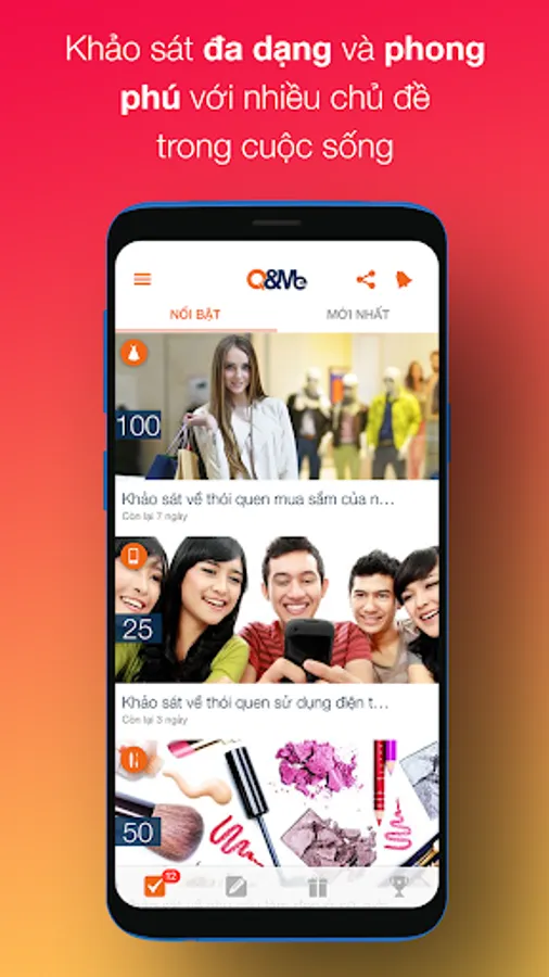 - You just need to download the app, become a member of the Q&Me community, participate in surveys and receive instant "bonus".