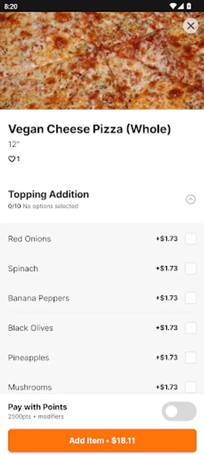 Bakaris Plant Based Pizza mobile app