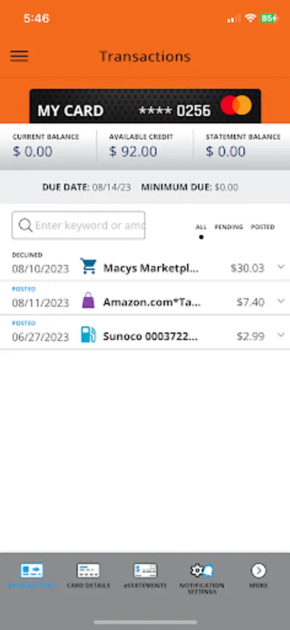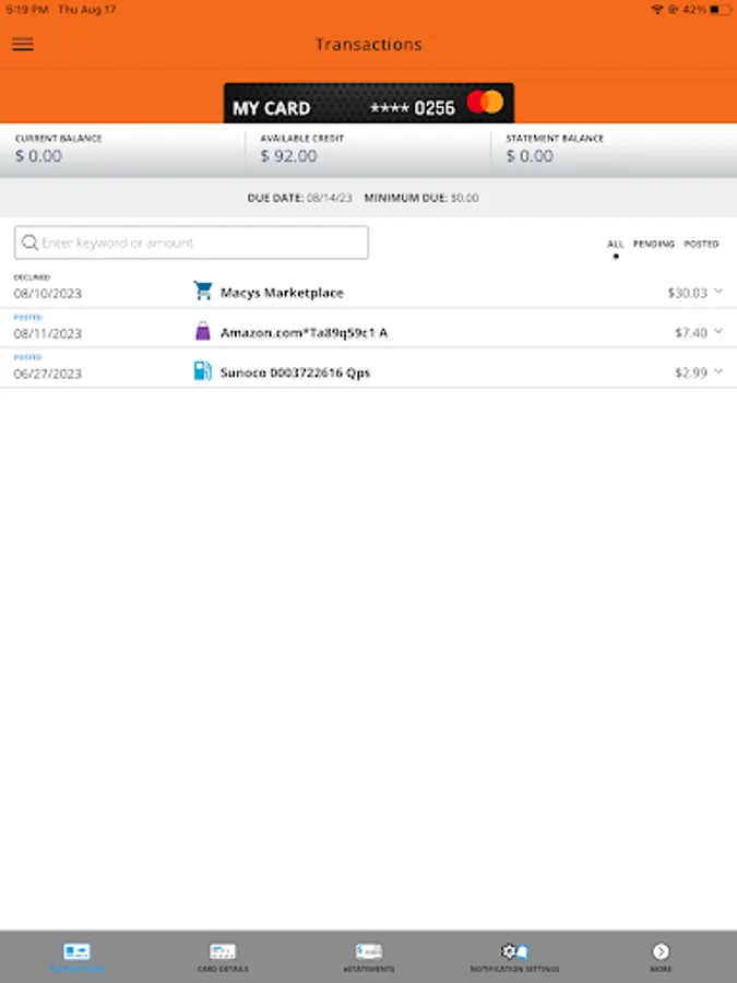 • View recent and pending transactions.