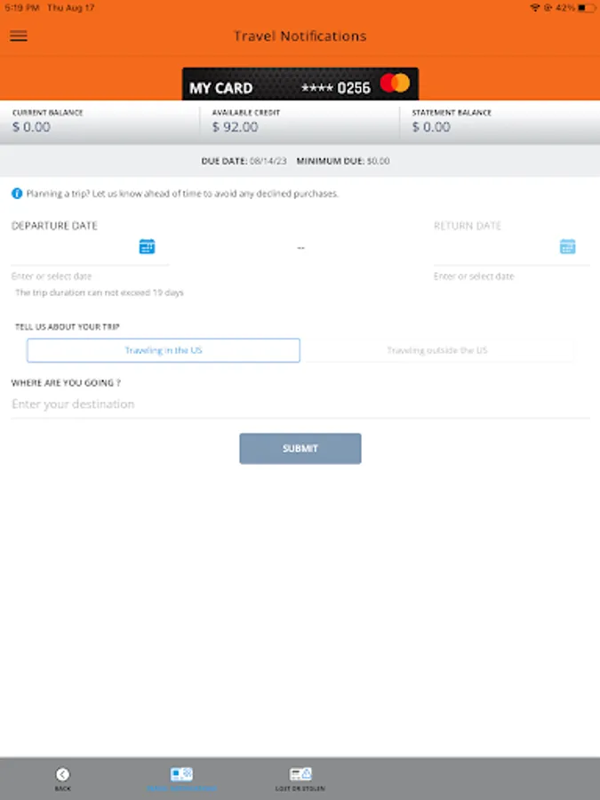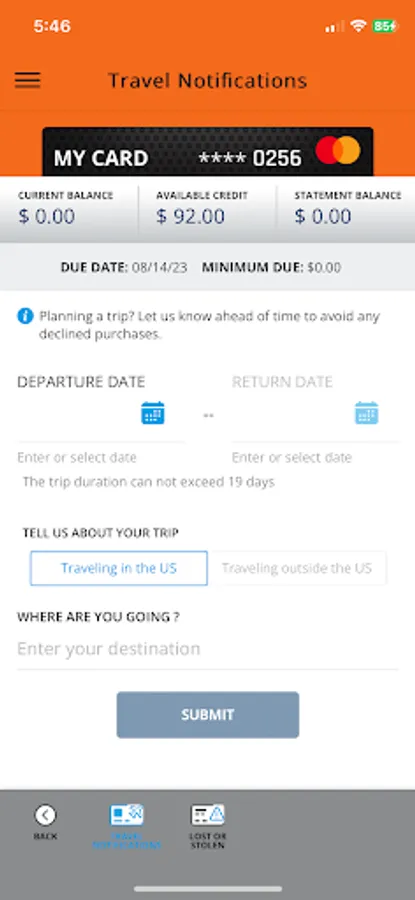 • Set travel notifications.