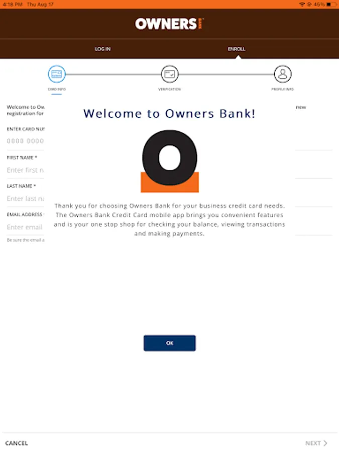Enjoy easy and on-the-go management of your credit card with the Owners Bank Credit Card app. This app offers a convenient way to: