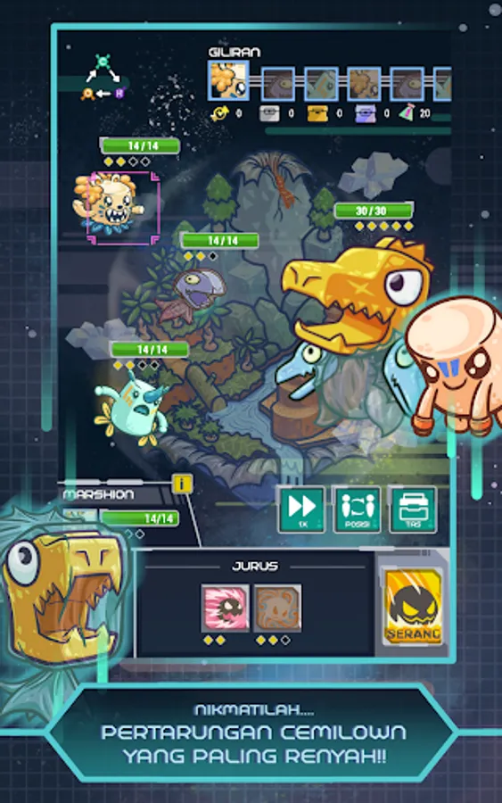 Nikmati pertarungan dengan gaya RPG, yang menantang dengan penuh strategi!