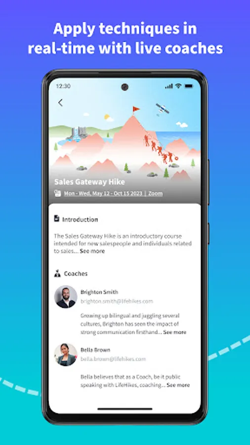 Developed over 25 years, LifeHikes proprietary methodology integrates coaching, content, and community into fun, interactive learning experiences. Professionals will understand their opportunities for skill growth through clear, data-driven pre- and post-assessment reports. Plus, our Hike learning experiences provide recommendations, in-app practices, and exercises underpinned by our proprietary technology. This enables professionals to grow their skills outside of their live training using our LifeHikes Mobile App.