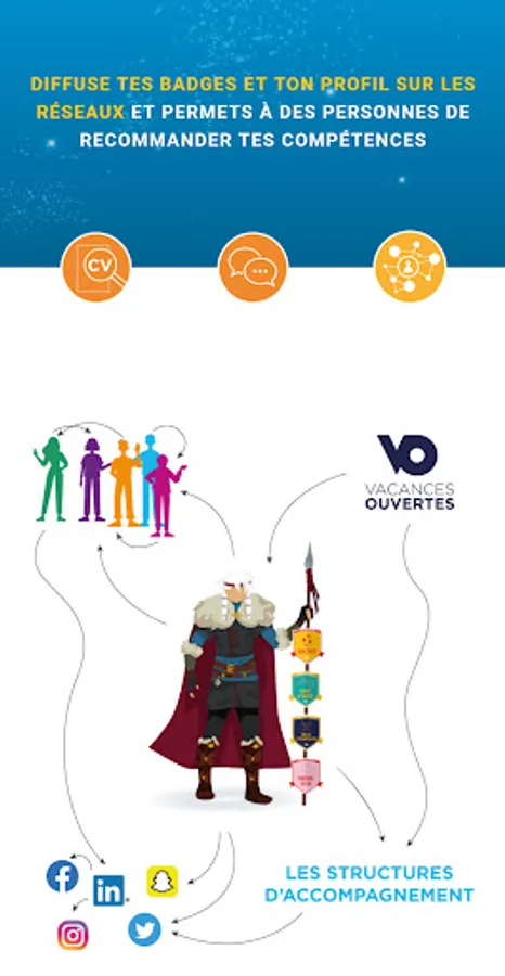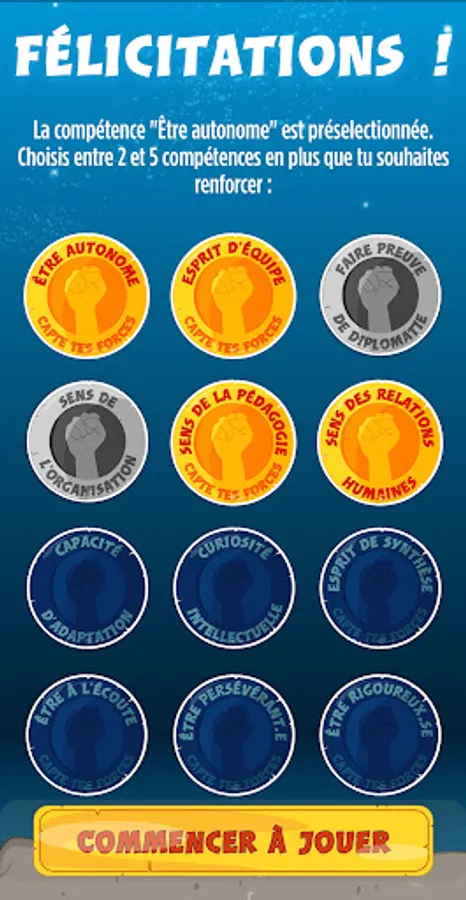 Captte tes forces is developed by the Open Holidays association. In October 2020, this application won the 1st prize in the "Skills Developer" Hackathon organized by Pôle Emploi Provence-Alpes-Côte d´Azur and La Ruche Marseille. It is also supported by Macif Île-de-France and the Nouvelle-Aquitaine region.