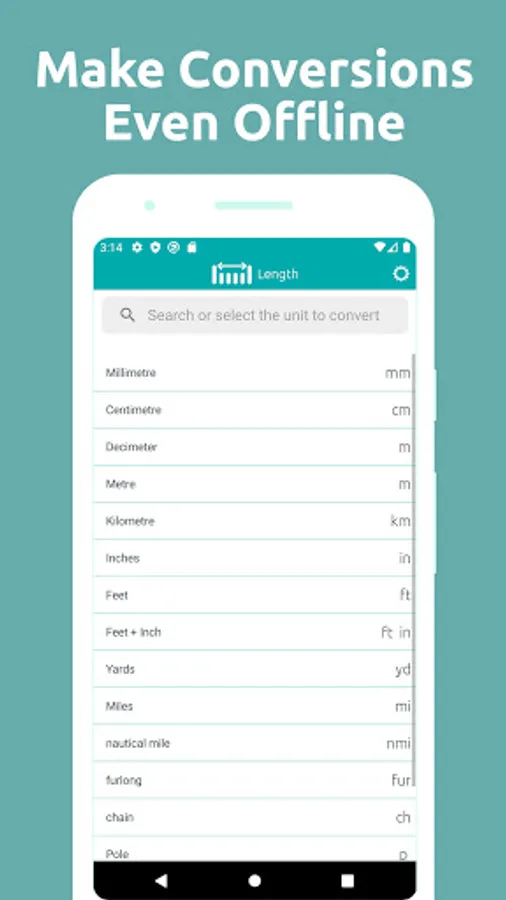 So easy! Choose the type of measure among the icons, then scroll to the two units you are looking for. The Unit converter is ready for the unit conversion!