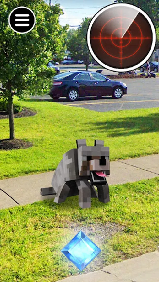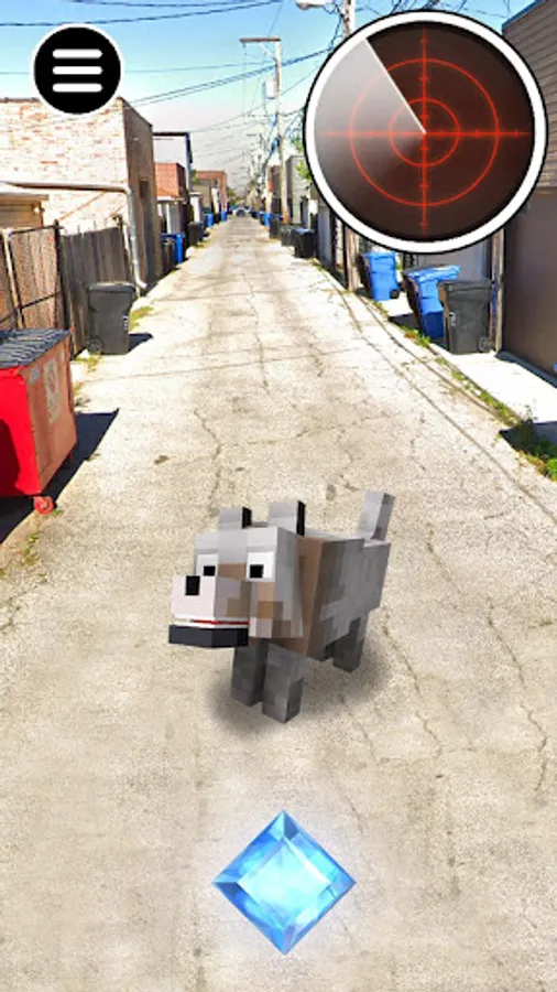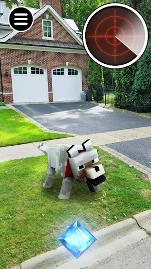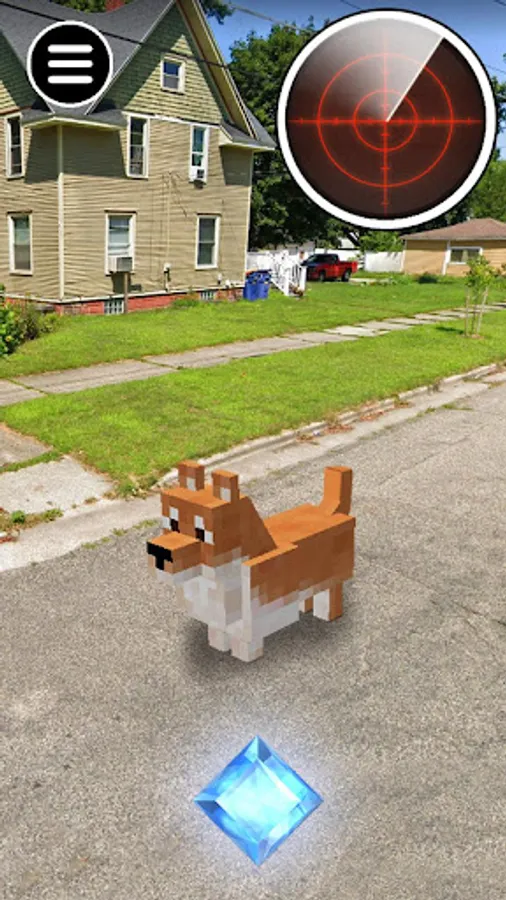 Using the built-in radar, locate for craft puppies in your real street, go explore the city, parks and squares, even in your apartment you can find them. Once you find the blocky puppy, use the blue crystal to catch it in your smartphone.