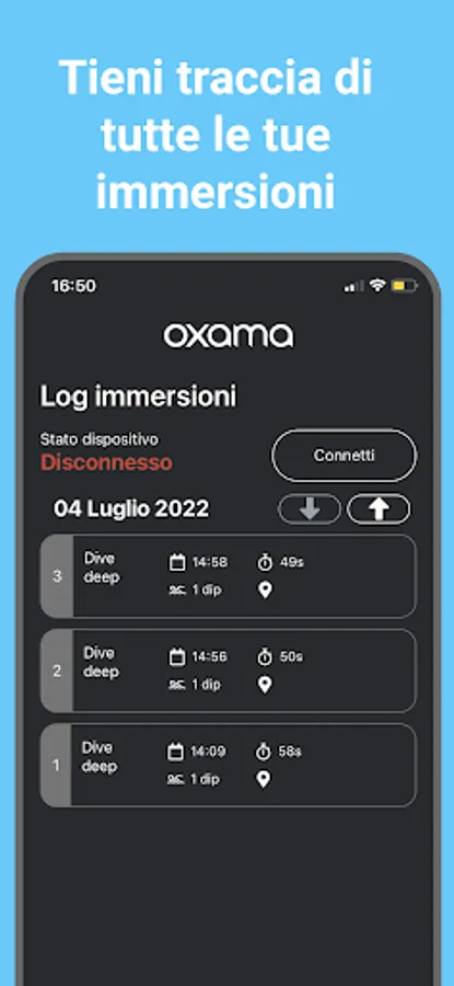 Manage your OXAMA devices: data analysis, firmware updates, freediving settings.
