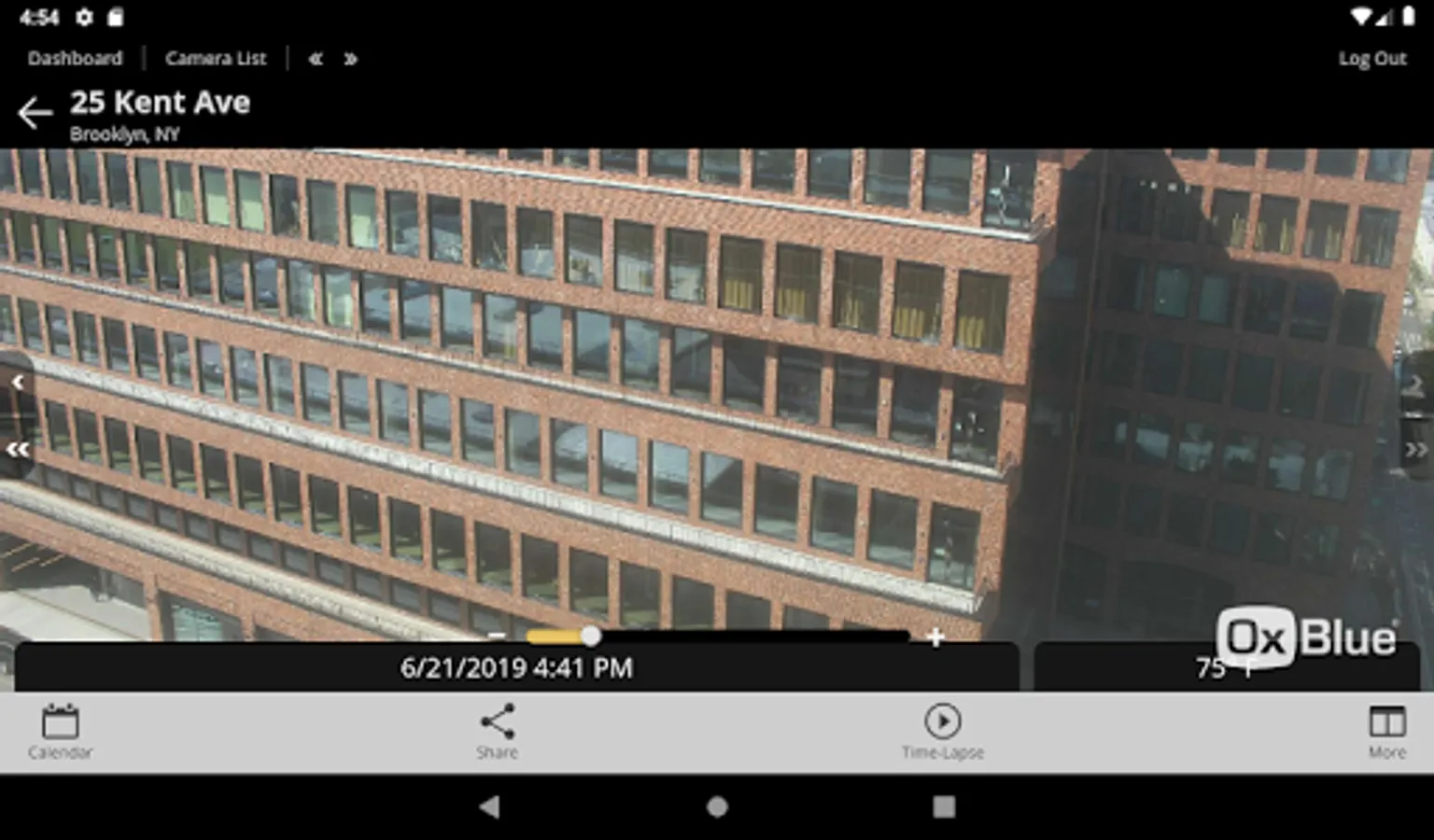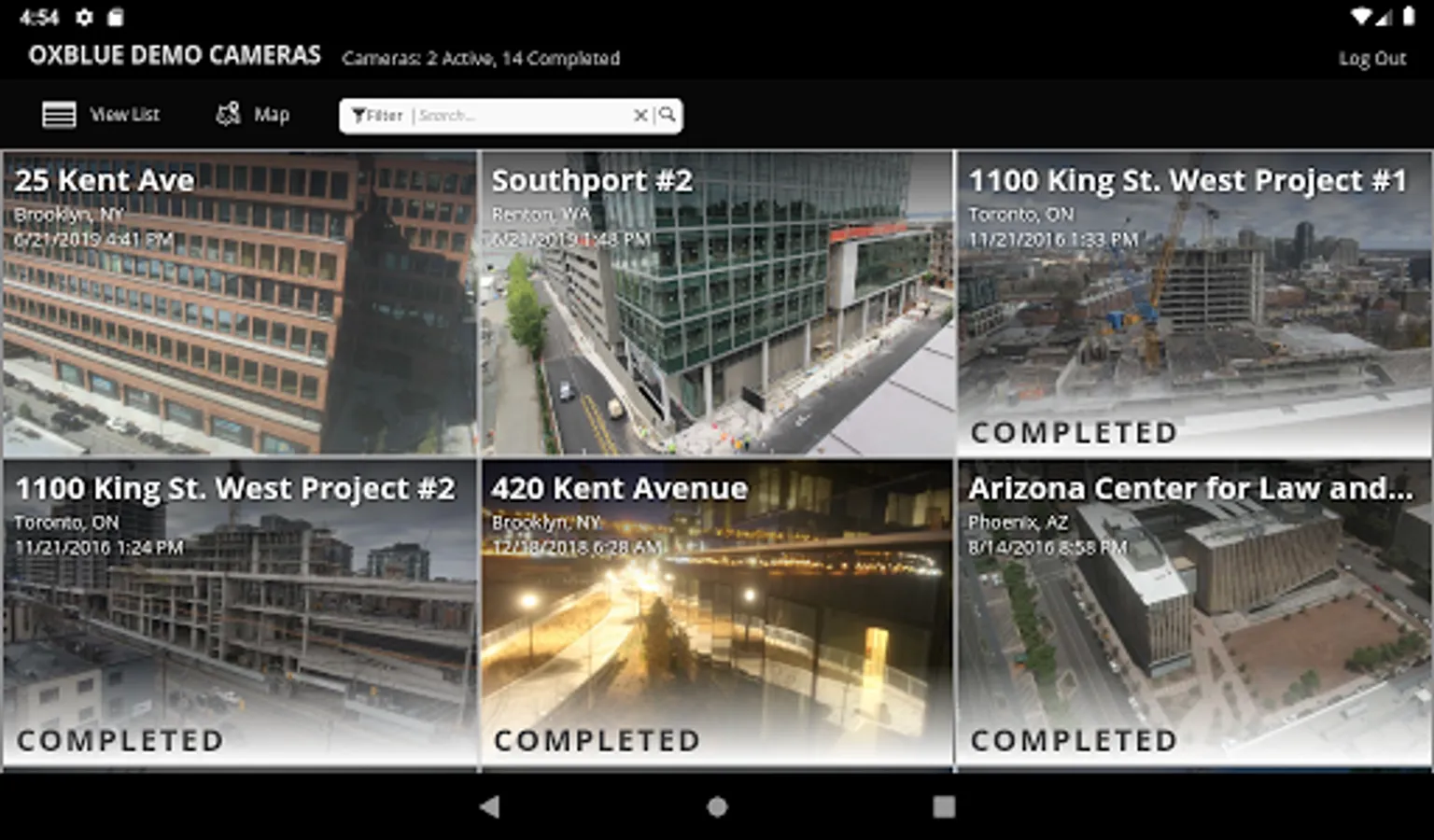 The OxBlue Camera Viewer application will enable you to view your OxBlue construction cameras on your Android device. With the release of this app, you now have the ability to see all of your jobsite cameras on-the-go!
