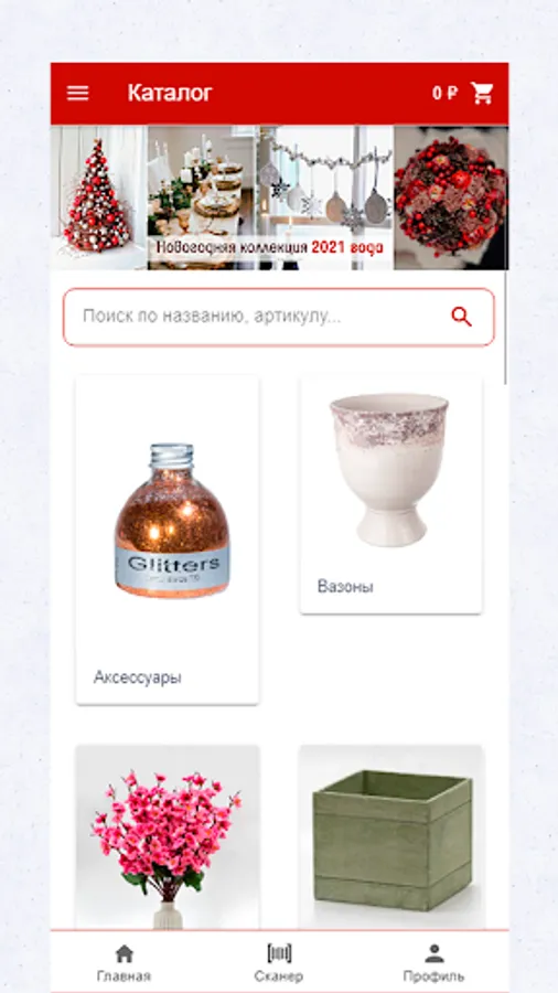 An application for placing orders for more than 10 thousand products, including: ceramics, glass, wood, plastic, metal, packaging for gifts and flowers, artificial plants and natural decorative materials, equipment and tools for florists, and much more. When registering in the application, a user's personal account with extended functionality is available (order management, loyalty system, etc.)