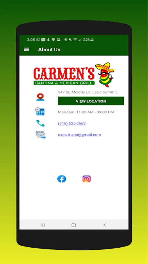 With Carmen's Cantina App you can easily order your favorite Mexican food to pick up at our restaurant in Lee's Summit Missouri. All you need to do is open the app, look up in our menu, select your favorites, and your ready to go. You will have access to our full menu, day special, and track your order. Also, you could save your account info as well your previous orders, ask for special instructions. Just download, order, enjoy, and order again.