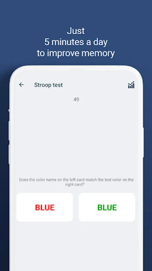 The more you train with "Brain Trainer", the more youβll improve brain cognitive skills and memory that are proven to boost productivity and self-confidence. Users who train at least 5 minute per session 3 times per week have reported memory improvement and improve focus and concentration.