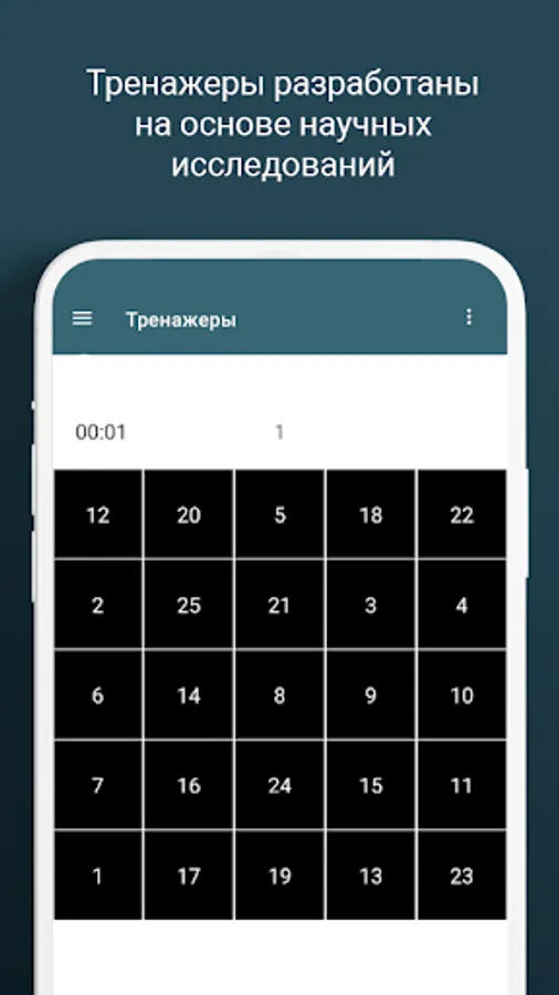 9. Schulte table - attention, brain development and speed reading. These are tables serving to develop the speed of objects.