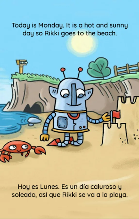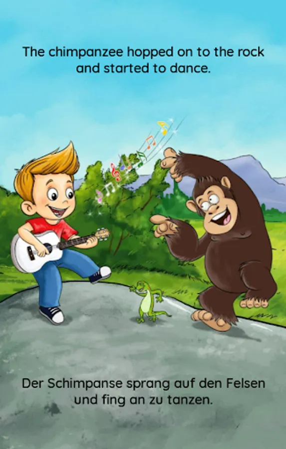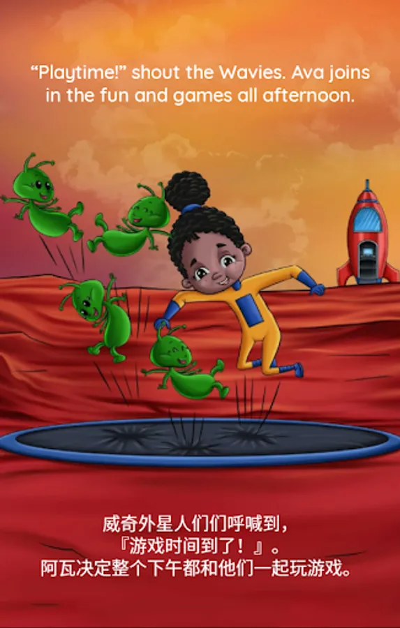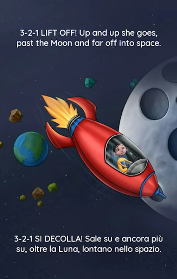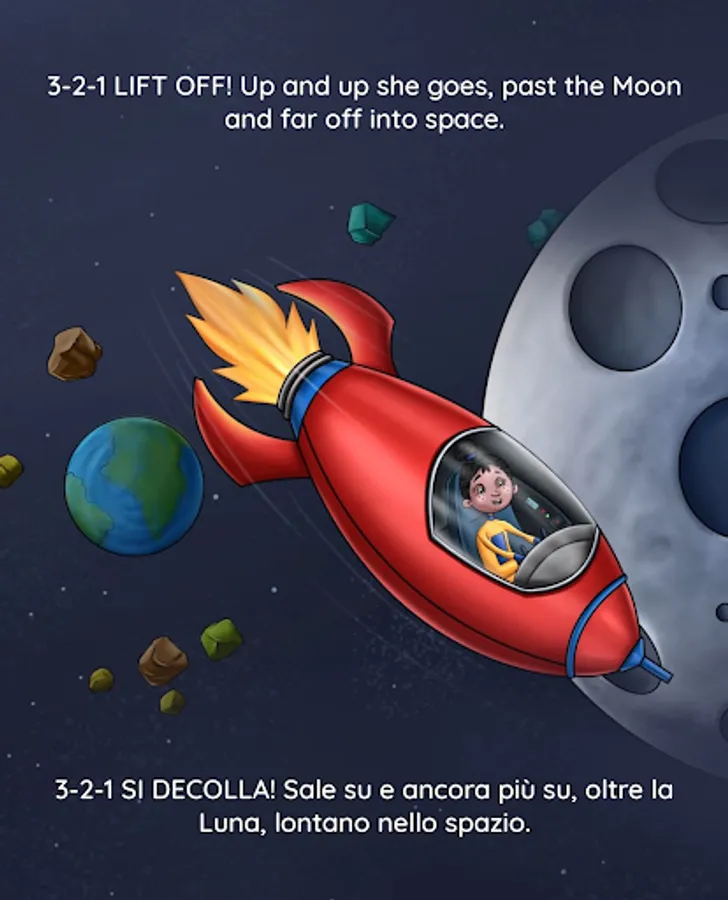 Our bilingual or dual language eBook app displays one language at the top of the screen and the other at the bottom. You can change languages at any time, or remove one language if you prefer to use the app as a normal single language book reader. You can even remove both languages and go wordless! Wordless picture books are a fun way to promote creativity and imagination. You can enjoy our illustrations, talk about what you see and even create your own story.