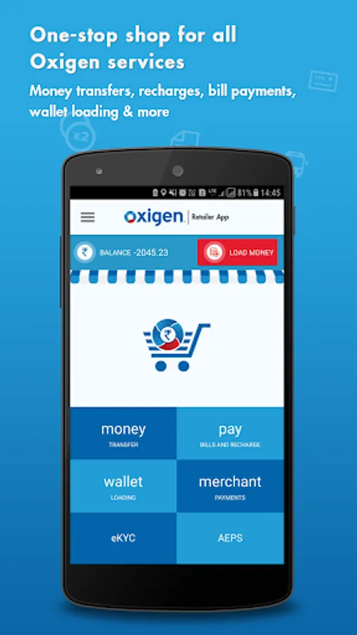 A host of services powered by Oxigen are available within the Oxigen Retail Agent app viz. money transfer services, recharges and bill payment services. This app may also be used to load money into a number of digital wallets such as Oxigen Wallet, Jio Money & more. In short, Oxigen retailer app brings all Oxigen’s services together in one-place and you can avail any of these in a few clicks. Also, it is much convenient and easy-to-use and let you save time and effort while offering services to your customers.