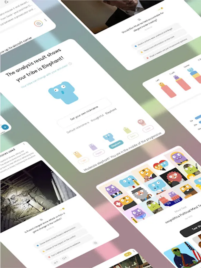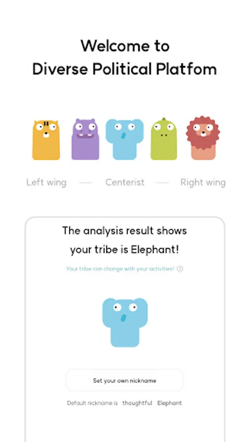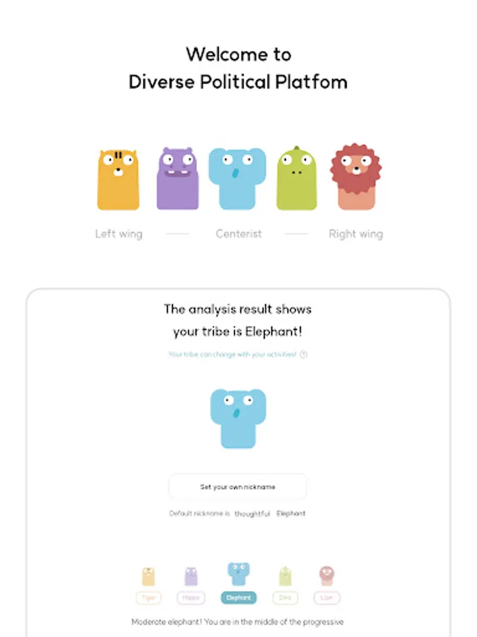 Political Tribes: Embark on a journey of self-discovery and embrace diverse perspectives with our political orientation survey. Uncover where you stand politically and find your tribe among our dynamic political philosophies. Discover the Tiger, Hippo, Elephant, Dinosaur, or Lion tribes, representing Progressive, Center-Left, Centrist, Center-Right, and Conservative viewpoints, respectively. Engage in enlightening discussions with fellow tribe members, deepen your understanding of different political orientations, and foster a sense of belonging within your chosen tribe.
