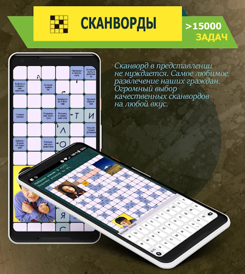 A huge base of crosswords more than 40,000 tasks for every taste. Crosswords, Keywards, Keyword, Italian (American) Crosswords. As well as Anagrams and very complex puzzle - Minesweeper crossword for those who like to break their heads.