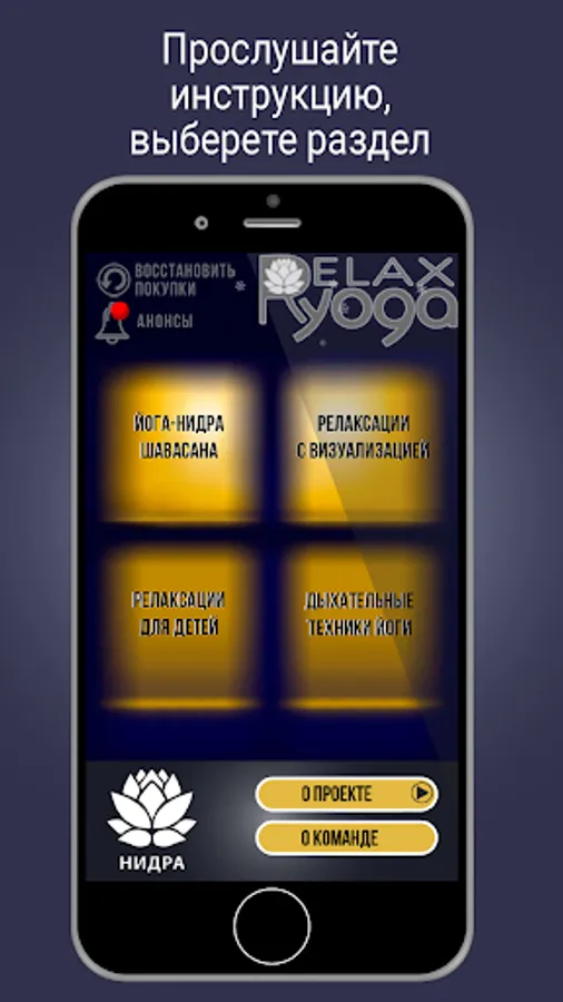 The updated version of the application 2021 contains 25 relaxation techniques from hypnotherapist, Yoga Nidra teacher Oksana Rogova