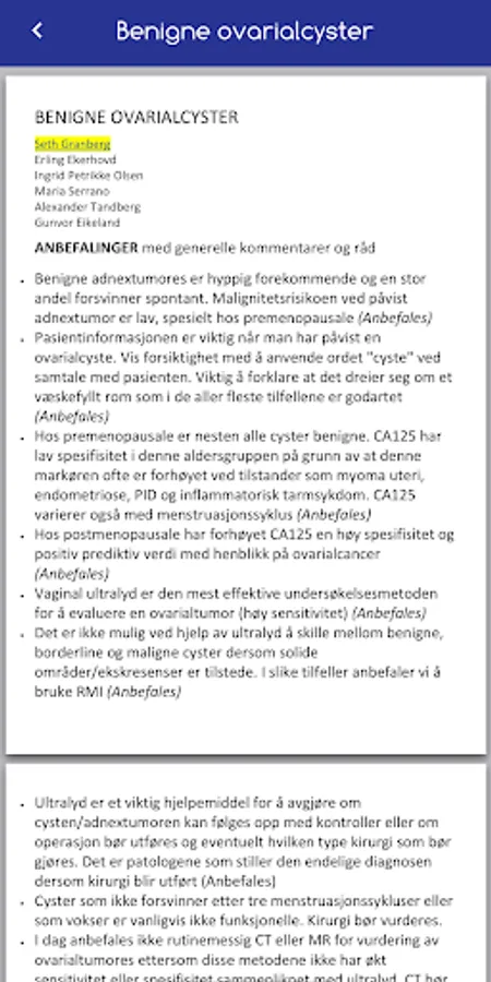 The guide itself is written by good gynecologists and obstetricians as a volunteer project. Among the authors of each chapter there are at least experts in the field. All chapters are quality-assured in several rounds and approved by the main editor before it is published.