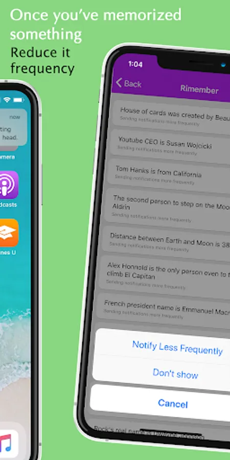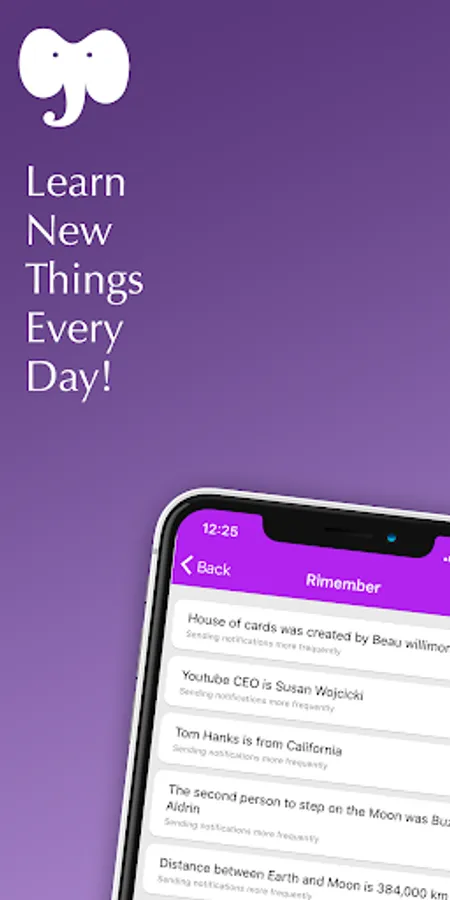 Now every day Rimember will send you a notification that will show you one of your saved facts. This way you get to relearn one of your saved facts every day. Hardly 5 seconds that you spend in reading the notification will be a useful investment into improving your knowledge of useful facts.