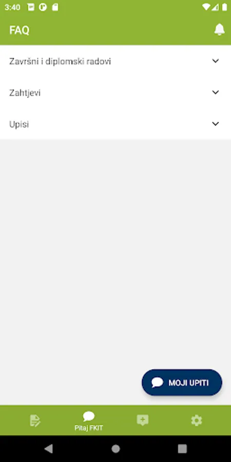 FKIT Mobile application is intended for all students of the Faculty of Chemical Engineering and Technology, University of Zagreb. The application provides information to students about the college and studies.