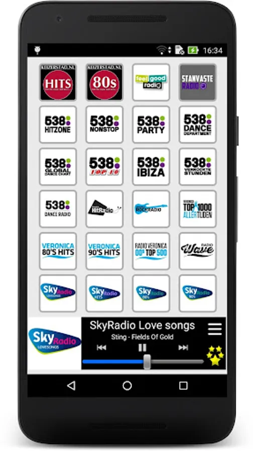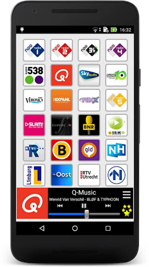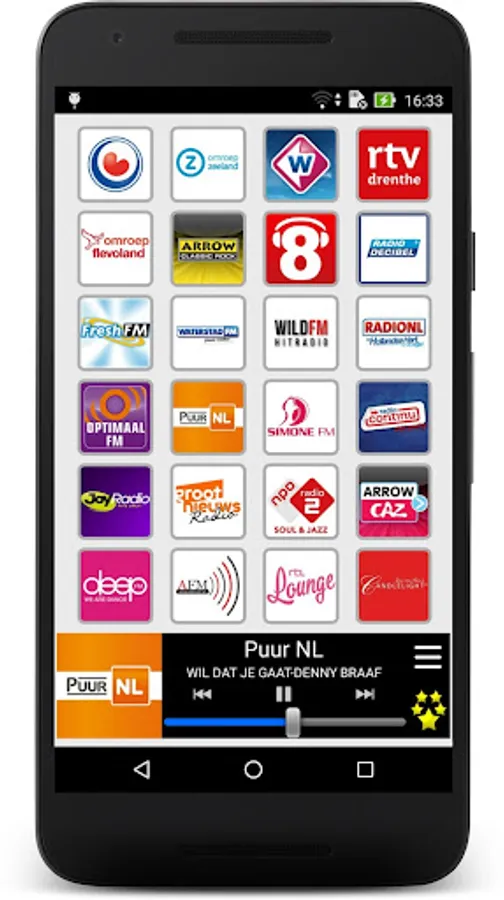 Warning: Radio Nederland requires an Internet connection and depends on the radio broadcast. Some stations can be temporarily unavailable.