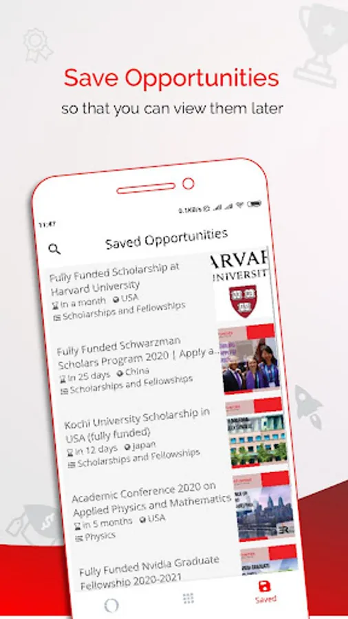 ✅ Smart Notifications to remind you to apply just in time before the deadline of saved opportunity ends