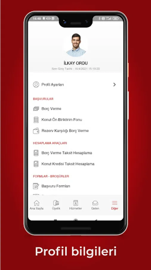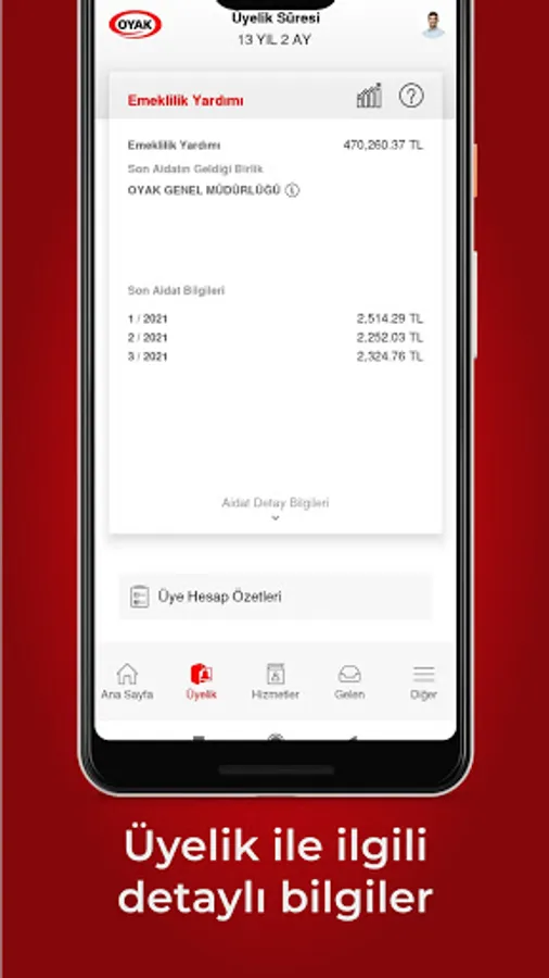 Using the OYAK Mobile Application with its updated design, you can view your membership information, get information about assistance and services, and make applications for services. With the renewed calculation tools menu, you can easily perform calculations and update your personal information registered at OYAK.