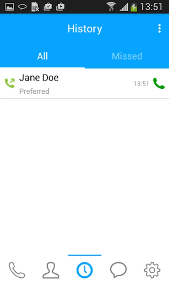 • Call history with a list of received, missed and dialed calls