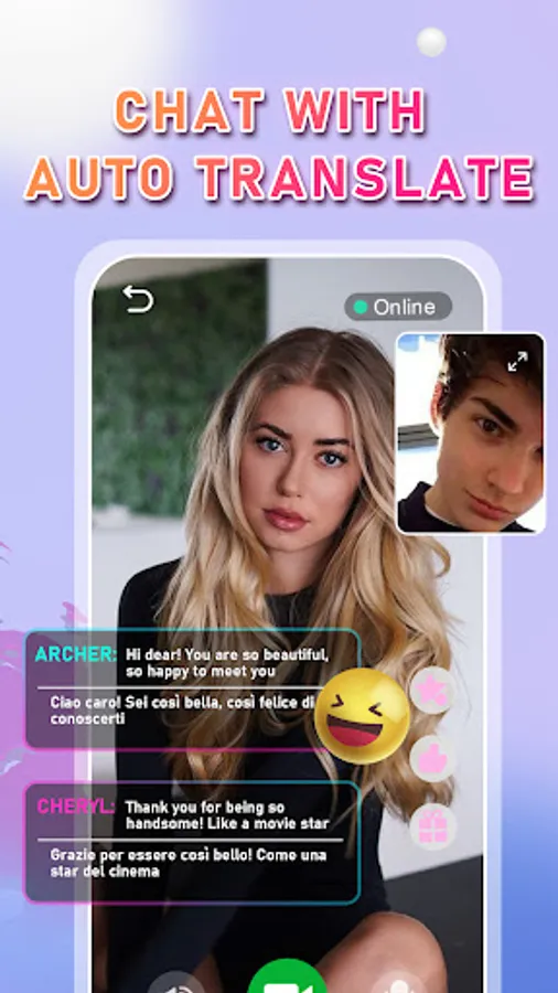It's never been so easy to use social app! OYE Pro is what you looking for! Wanna do something awesome and enjoy your time? Swipe up and down,you can see different people in live. One tap to make a video call to the one you are interested in. In OYE Pro,Meet new friends by make a video call and chat to random people from all over the world!Use our filter to choose different country you like.It's a great way to eliminate social phobia and understand different cultures!