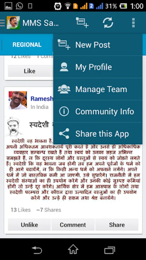 MMS Samvaad is unique and the best Indian Social Networking app to connect with the supporters of Swadeshi Vichaar Dhara from across the country. Read and share information about Bhai Rajiv Dixit, Swadeshi Products, Gau-mata, Swadeshi Chikitsa, ..