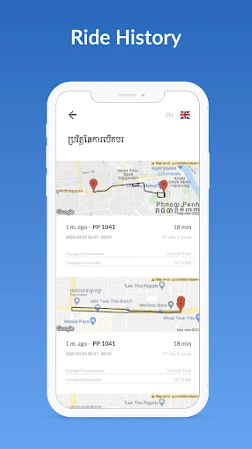 Ride sharing allows us to bring you the lowest transportation cost in Phnom Penh. You can rent a Go2 electric motorbike for a cost as low as 3 cents per minute!