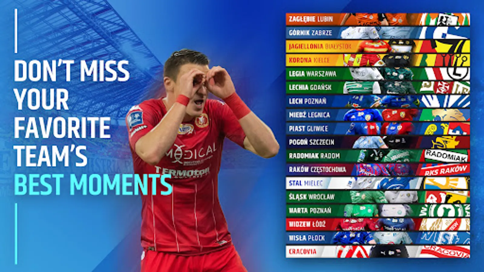 We've listened to your feedback! With our latest app, you'll experience unparalleled convenience and excitement as you feel the emotions of PKO BP Ekstraklasa. Join thousands of football fans and relive the thrill of a match day, all conveniently packaged, all in stunning quality, specifically for you to enjoy.