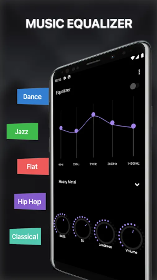 Equalizer has various features including five-band EQ to equalize your music, amp, bass boost, 3D virtualizer, slider volume & audio control.