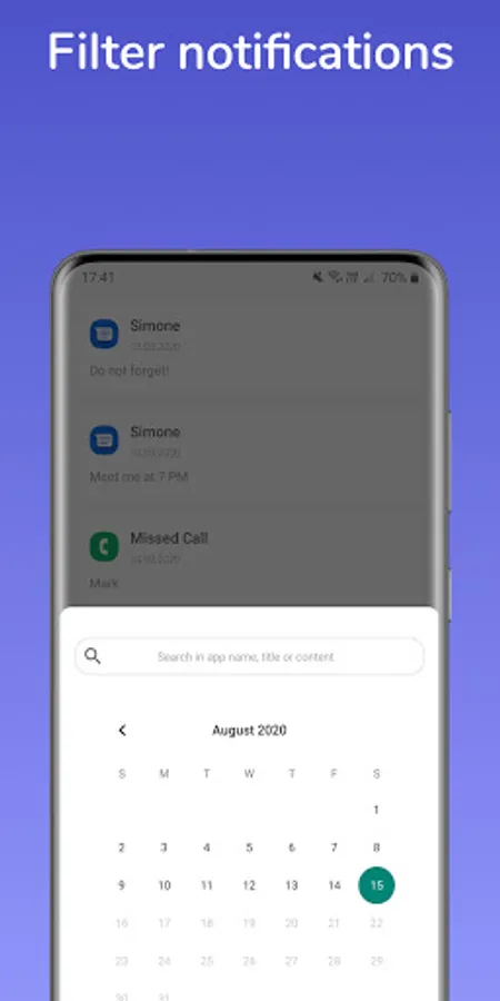 After you install the app, it will start generating your past notification log so you can search and filter anytime! Never miss any past notification.