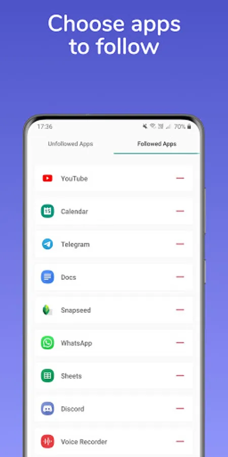 Follow apps to keep it's notification history. Delete unwanted notifications. Filter notifications by date, app name, title or content. Save important notifications to archive.