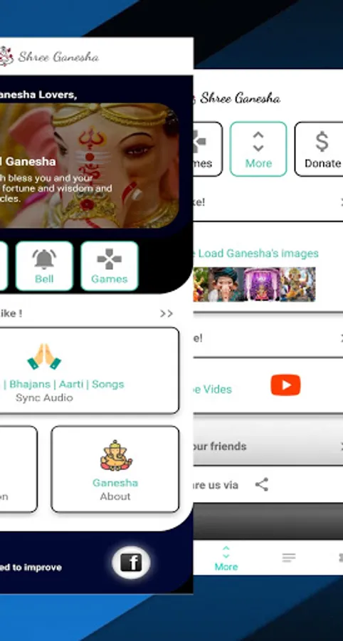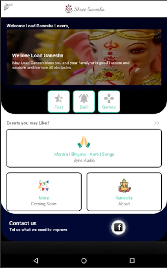 Ganesha also known as Ganapati and Vinayaka. Recite Lord Ganesh Aarti & Songs on the auspicious occasion of Ganesh Chaturthi to invoke divine blessings of Lord Ganesh. Ganesh Aarti are devotional songs of Lord Ganesh. This App is a collection of all about the Load Ganesha.