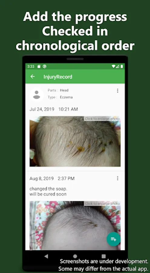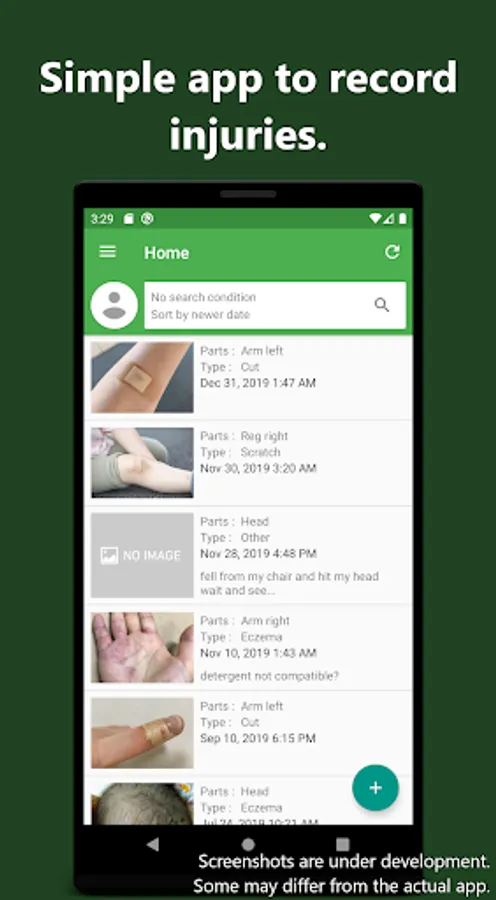 Injury status can be recorded with photos. It is suitable for recording children as well as themselves.