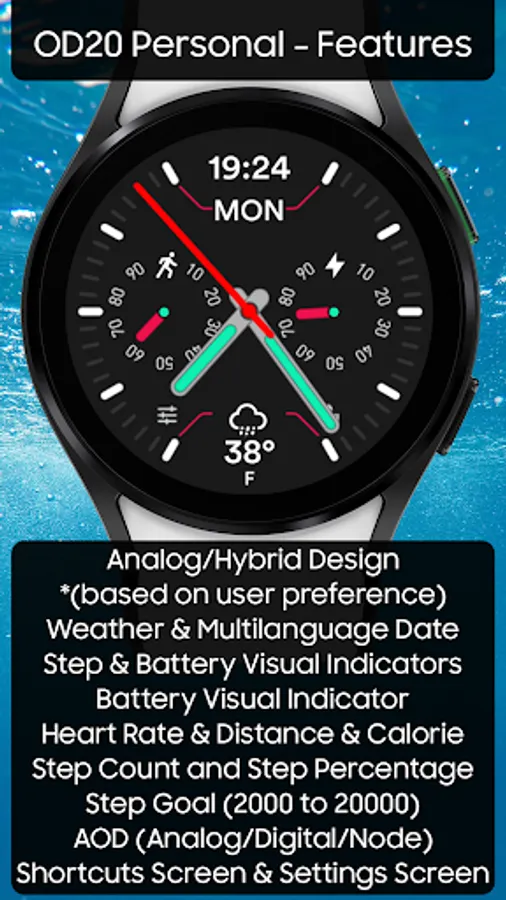 OD20 Personal Watch Face supports all Android Wear OS devices with Android 7+ and API Level 25+