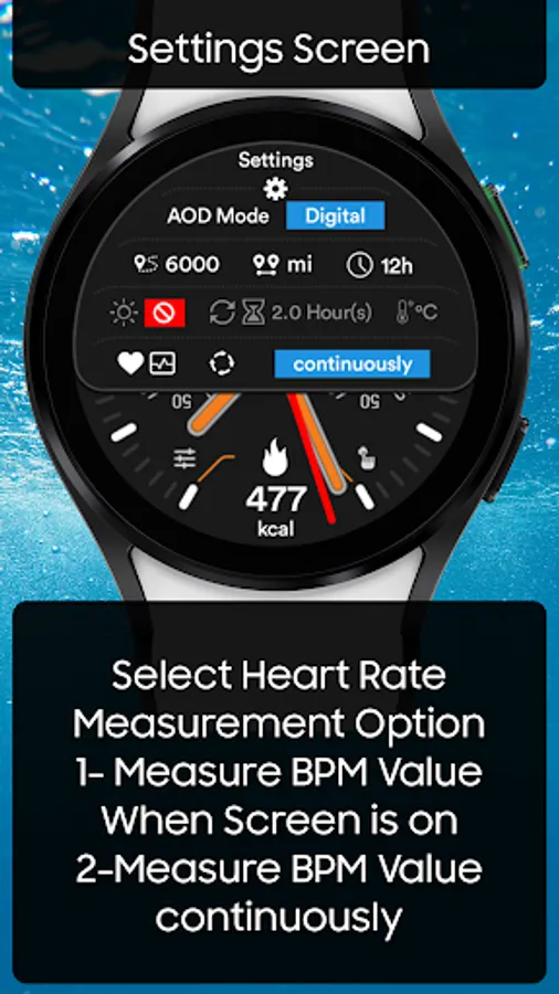 * If "Measure When Screen is on" option is selected: Heart rate acquisition from the sensor is restarted at the start of "each" screen opening. Data reception is turned off when the screen is turned off to conserve battery consumption. Therefore, the update of the heart rate bpm value may be delayed for a few second due to this restart when the screen is turned on.