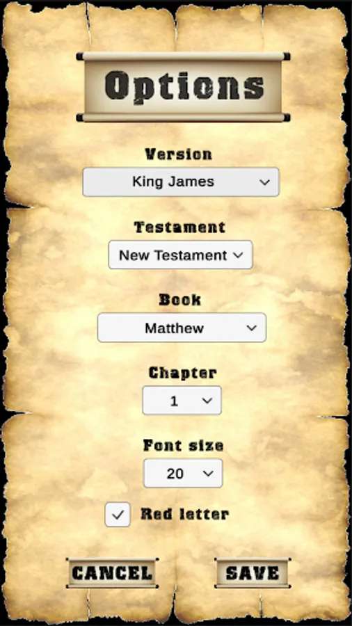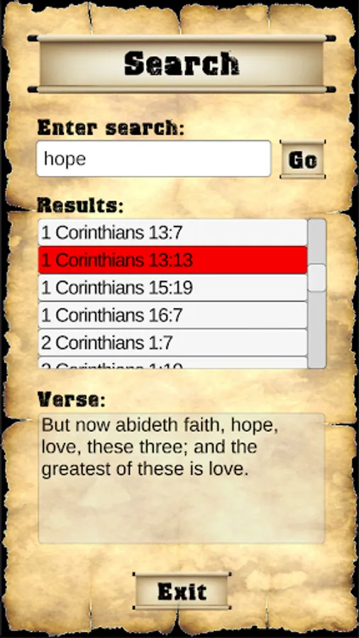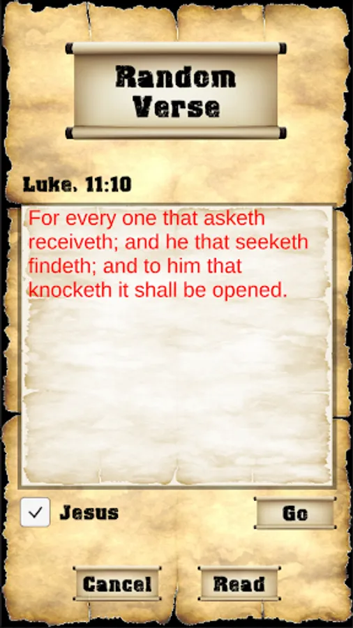 The app also allows you to set the font size for easier reading, has a search facility to find words or phrases, and can present random verses on request.