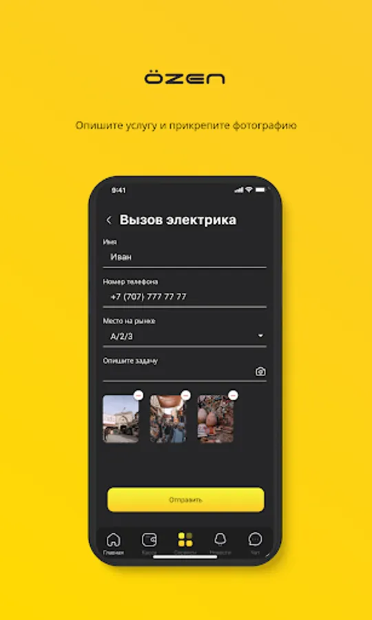 - возможность отправить заявку на выполнение услуг и отслеживать статус по ней в реальном времени,