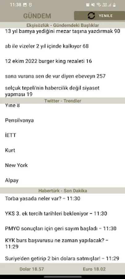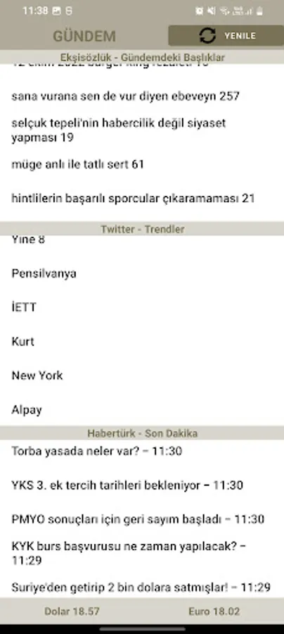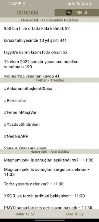 In these times, where the number of daily data is increasing exponentially every day, the speed of reaching the topics on the agenda and the information we are looking for is now of great importance. For this purpose, our application aims to display Ekşisözlük's most popular titles, Twitter trending topics and some other current developments quickly and effectively on the same screen and deliver them with one click.
