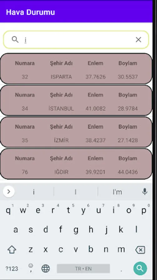In the application, the user can access the weather conditions of the city they want and more specific information if needed.
