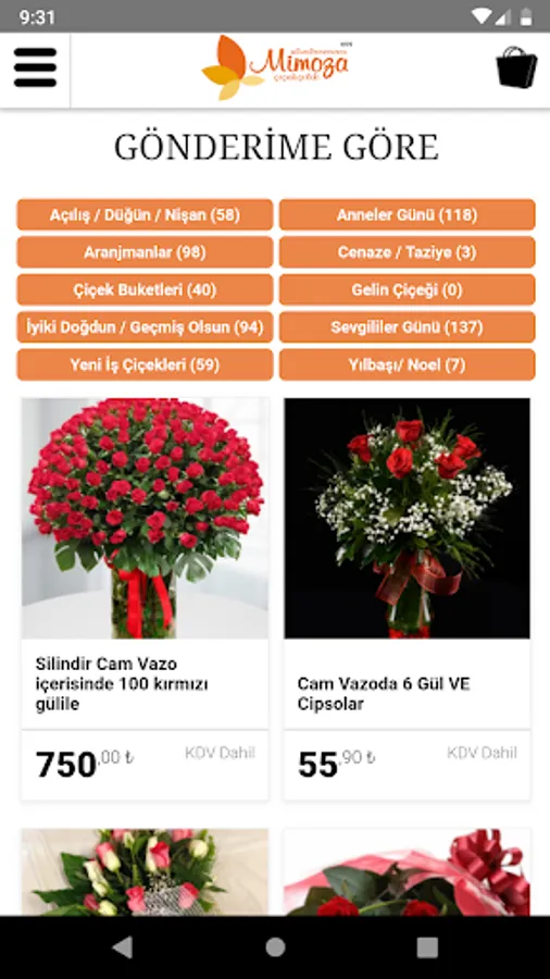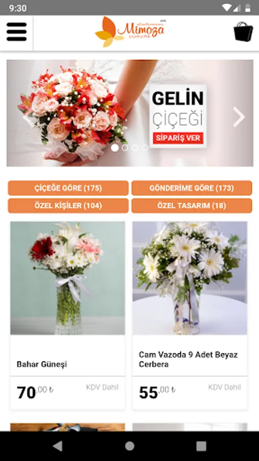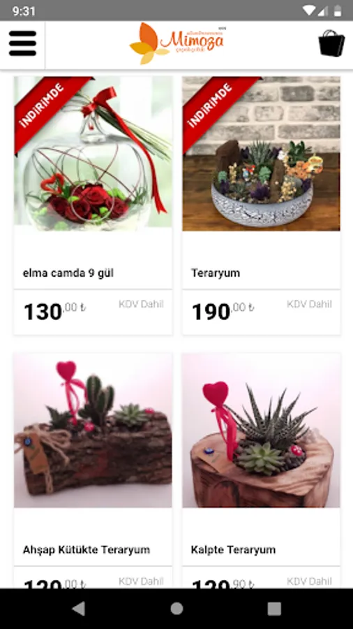 Mimoza Flower com a special campaigns and discounts can now reach through our application you can easily place your order. As Mimosa flower, we are at your service with different designs, flowers in vases, flowers in boxes and various terrariums.