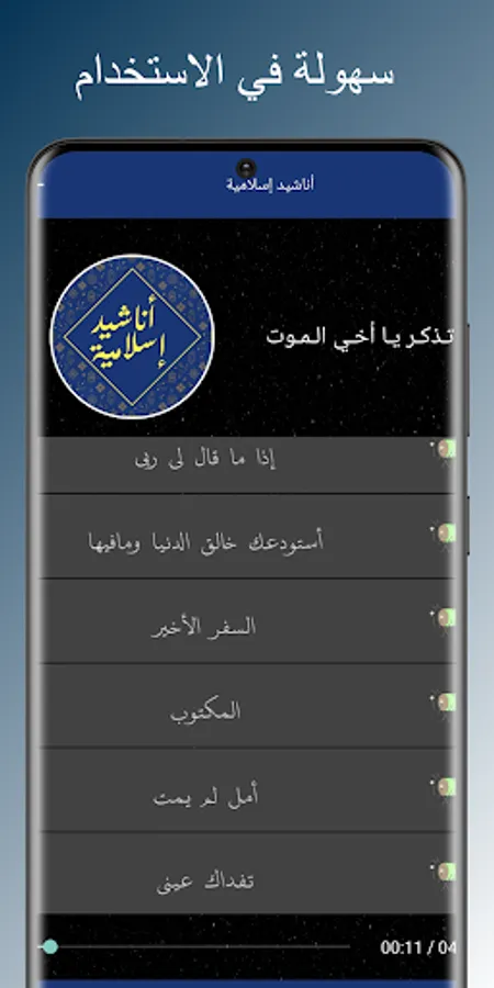 In short, the Islamic songs application is a useful and multifunctional application for fans of Islamic songs, as it provides a wide variety of high-quality and easily accessible Islamic songs, as well as many useful features