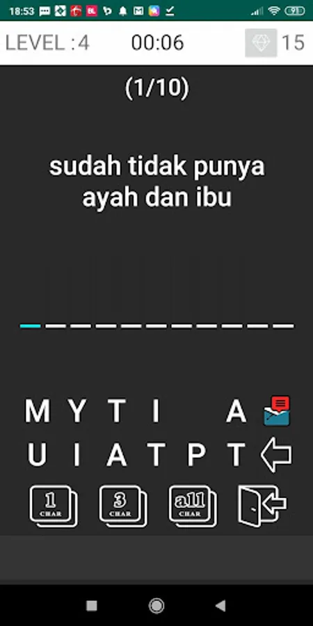 - Rating based on the time and number of characters of the correct answer