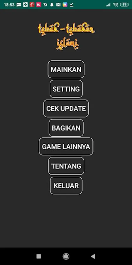 Guess Islamic Guess is a play on the question and answer quiz model. This game is as an entertainment and reminder of elementary and middle school lessons. The questions in this game 70% of questions are taken from elementary and junior high school religion textbooks. It is hoped that after playing this game do not forget the basic lessons that have been taught at school.